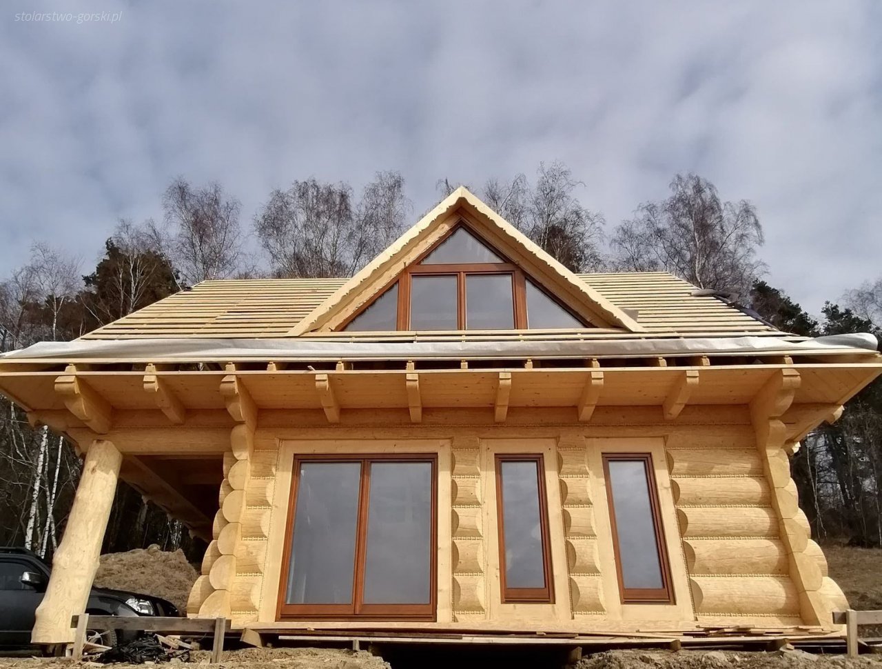 - szerszy profil drewna o grubośći 92 mm wykonany z kantówki czterowarstwowo klejonej