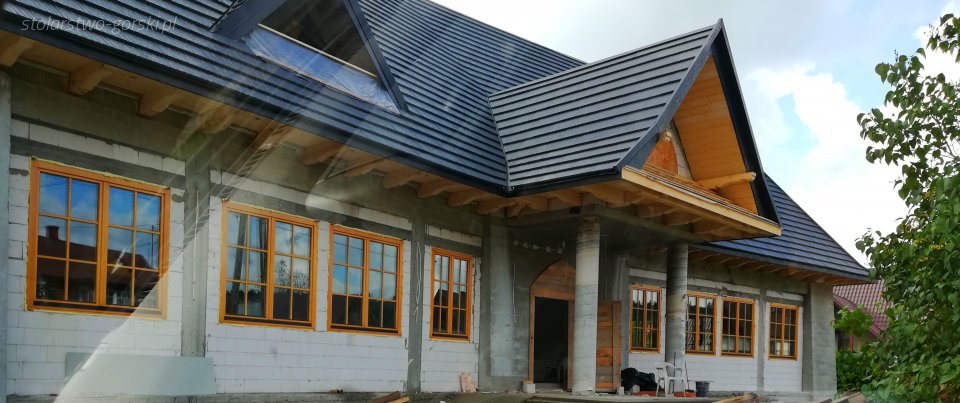 - szerszy profil drewna o grubośći 92 mm wykonany z kantówki czterowarstwowo klejonej