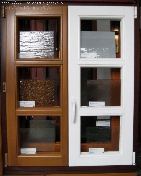 - o różnych szybach (zespolone szyby termoizolacyjne , antywłamaniowe, ornamentowe)